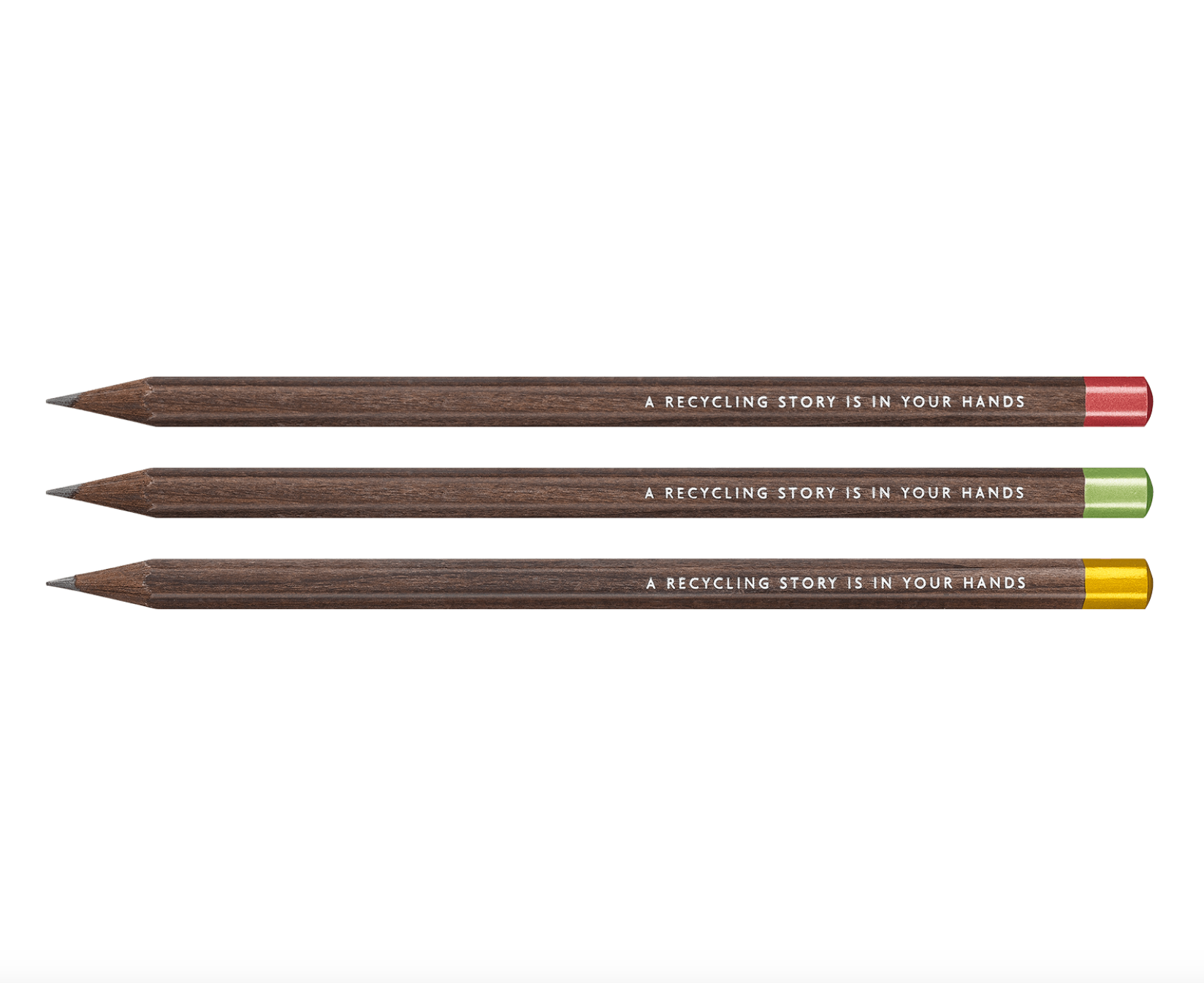 The 100% natural leads can also be found in an exclusive set of three graphite pencils made from FSC-certified Swiss wood and decorated with 3 metallic capsule colours: pink, green and gold. Sold in recycled and recyclable packaging, these instruments provide an eco-friendly writing and drawing experience bearing the engraved inscription: “A recycling story is in your hands”!
