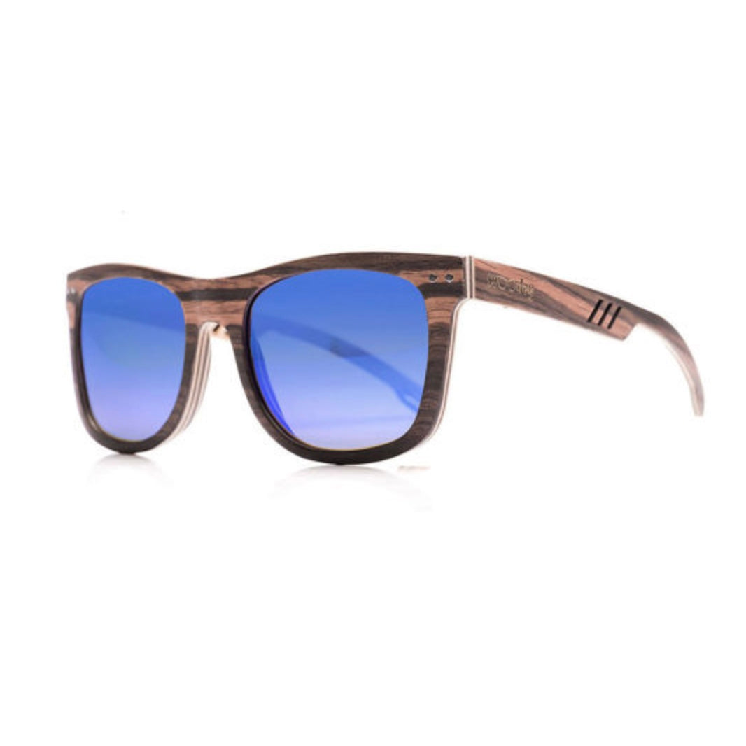 Woodey Rebel Sunglasses have an Indonesian Ebony wooden veneer with blue polarised lens (frame:144mm; lens:54mm)