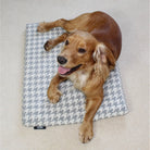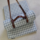 Travel light with a beautiful houndstooth fabric dog mattress, complete with a hand-stitched English leather carry harness and you are all ready for weekends away, work and special outings.