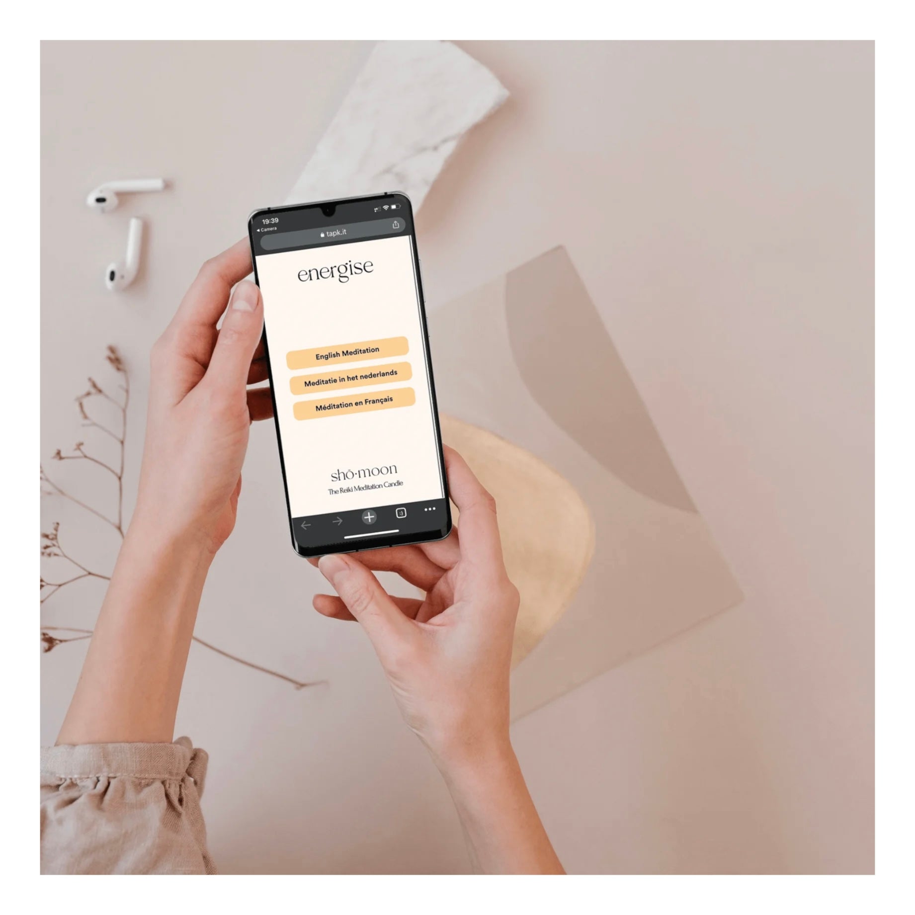 Each candle is paired with a complimentary guided Reiki-infused meditation to give a boost of energy to your mind and body. The mediation can be access via a QR Code under the candle lid and is available in English, Dutch, and French.